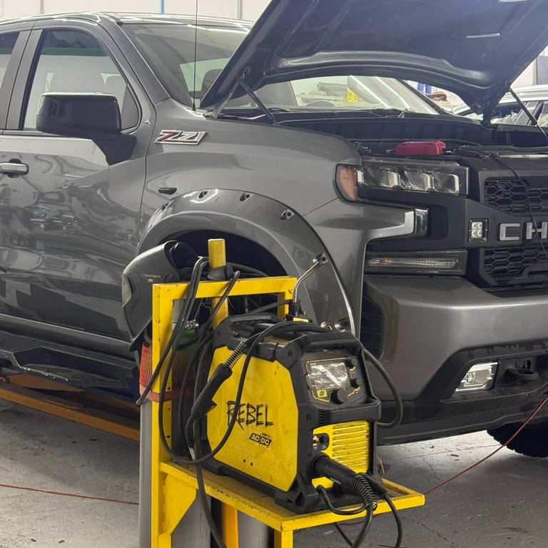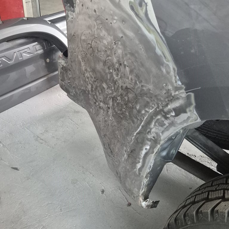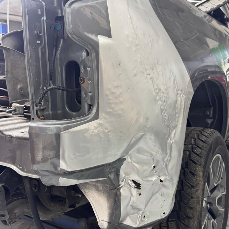 Į mūsų autoservisą pateko Chevrolet Silverado, atvykęs iš užsienio su pažeidimu galinio sparno srityje. Smūgis buvo lokalus, apsiribojantis tik galiniu sparnu, todėl automobilis išlaikė savo konstrukcinį vientisumą ir yra tinkamas apdailinės skardos atstatymo darbams.